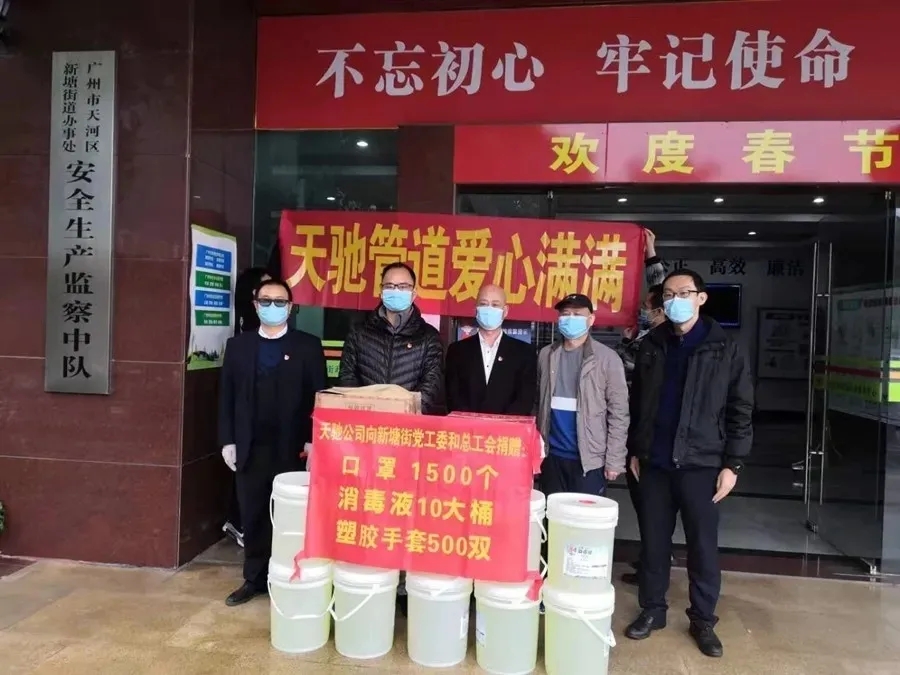 2020年2月,“新(xin)型冠狀病毒”的(de)(de)(de)疫(yi)情(qing)牽(qian)動(dong)著全國(guo)人民的(de)(de)(de)心,面(mian)對這(zhe)場沒有硝煙的(de)(de)(de)戰(zhan)爭,天(tian)馳人眾(zhong)志成城,嚴陣以待,在這(zhe)場戰(zhan)役中貢獻(xian)著自(zi)己的(de)(de)(de)力量,向天(tian)河(he)區新(xin)塘(tang)街黨工委和總工會捐(juan)贈口罩(zhao)1500個、消(xiao)毒液10大桶(tong)、塑膠手套500雙,全力支援一線疫(yi)情(qing)防控工作,以實際行動(dong)彰(zhang)顯天(tian)馳的(de)(de)(de)責(ze)任與擔當。