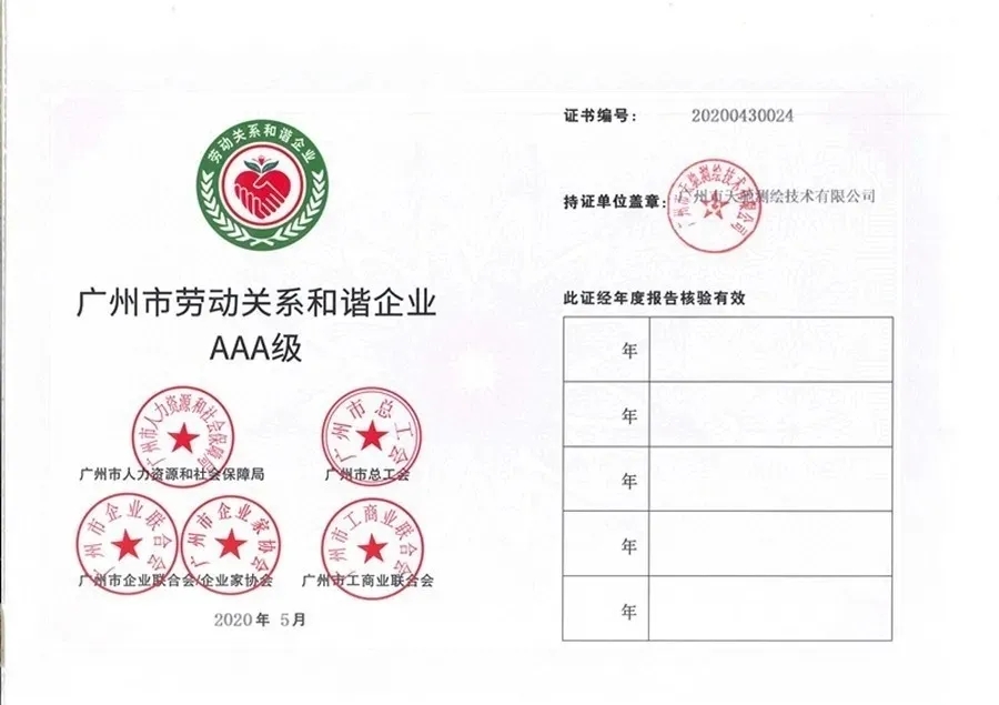 天馳(chi)公司(si)榮獲“廣州(zhou)市勞(lao)動關系和(he)諧企業(ye)AAA級(ji)”榮譽(yu)稱號