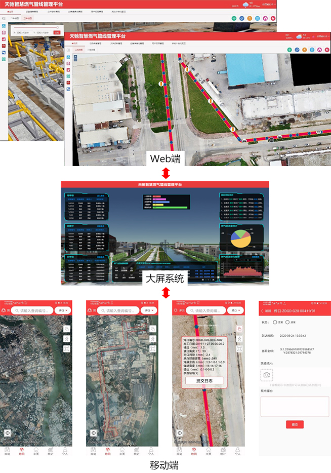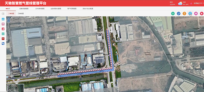 天馳智慧燃氣管線管理平臺(以下統稱平臺)是天馳公司自主研發的專業管線信息化管理系統。該平臺主要利用云端技術、物聯網技術、三維建模技術打造管線信息化產品,專注于燃氣管線的工程施工、生產調度以及運營維護等階段的信息化服務,包含二三維地圖管理模塊、燃氣管線工程管理模塊、生產運營管理模塊、巡檢維護模塊、應急管理模塊等功能模塊,旨在提供燃氣管網全生命周期的信息化支撐與服務。