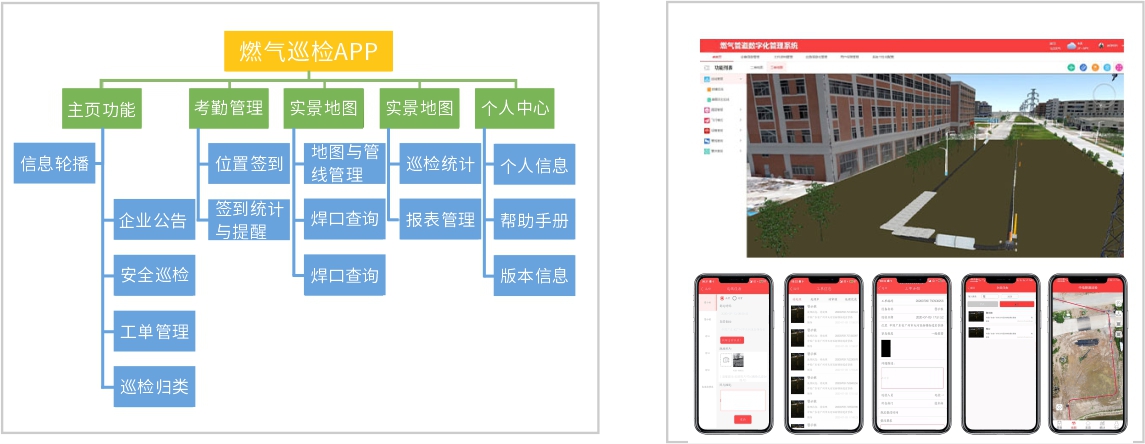 應用領域:燃氣管線全生命周期管理,二三維燃氣信息化、安全巡檢,應急管理、日常養護管理。