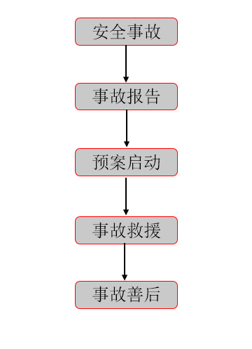 第四十九條 公司制定(ding)應急預案(包(bao)括綜合應急預案、專(zhuan)項應急預案、 現(xian)場處(chu)置方案),項目生產(chan)過程(cheng)中發生突(tu)發事(shi)故,必須(xu)嚴格按(an)照本規定(ding)的要求和應急預案,進行事(shi)故應急處(chu)理(li),應急處(chu)理(li)操作流程(cheng)如下: