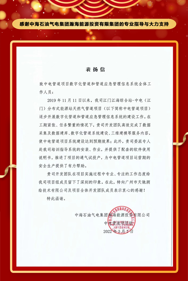 廣州市天馳測繪技術有限公司,專注于地下管線技術服務,專注于打造地下管線一攬子技術解決方案。此產品的正式發布,標志著我司在地下燃氣管道的信息化服務的技術研發水平提升到新的節點。未來,天馳信息化研發團隊,將秉承實干、求真的態度,秉持不斷開拓創新的精神,加大技術研發及項目實施的投入,力爭為燃氣管道行業的發展添磚加瓦。
