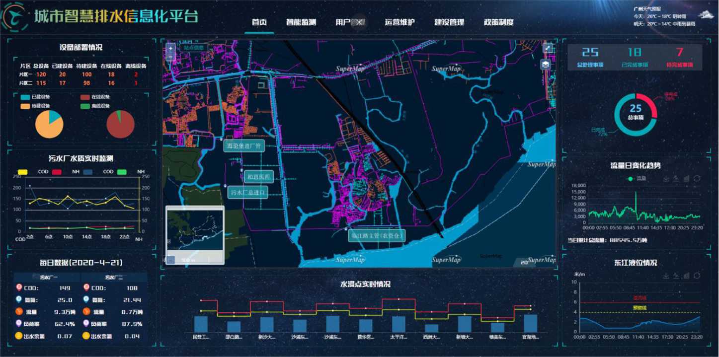 應用領域:排水管道運營維護管理,城市內澇風險控制、黑(hei)臭水體治理、水利模型(xing)、排水管道運行狀況監測(ce)。